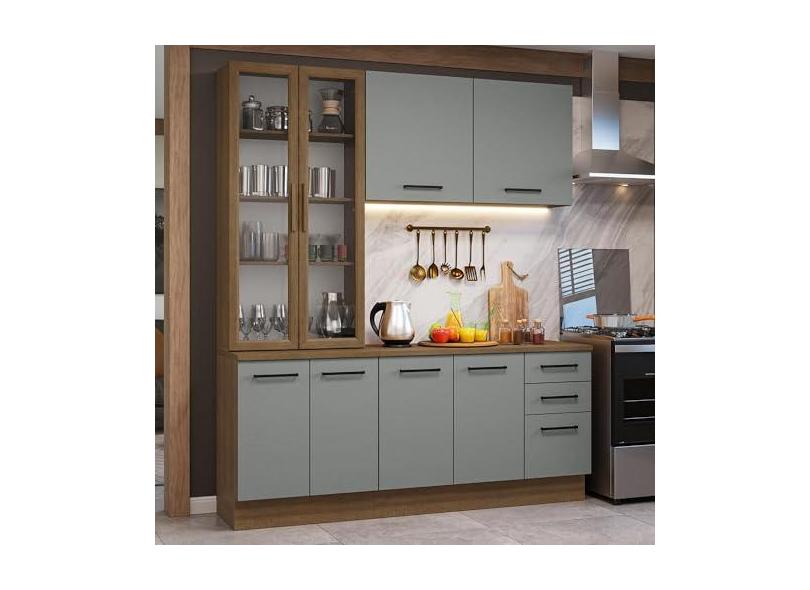 O menor preço encontrado no Brasil para Armário de Cozinha Completa 190cm com Cristaleira Rustic/cinza Agata Madesa 01 atualmente é R$ 2.267,99.