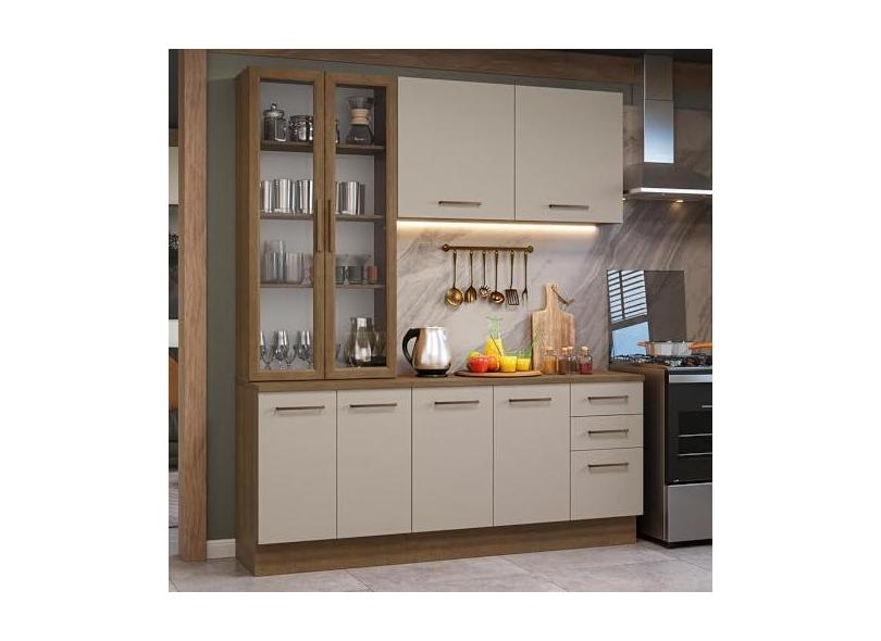 Armário de Cozinha Completa 190cm com Cristaleira Rustic/crema Agata Madesa 01