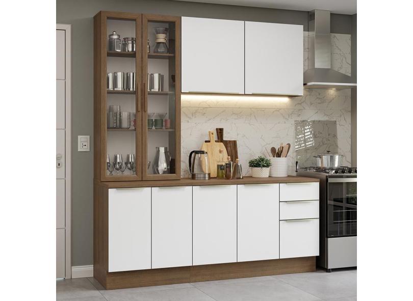 O menor preço encontrado no Brasil para Armário De Cozinha Completa 190cm Veludo Lux Madesa Rustic Branco atualmente é R$ 3.195,99.