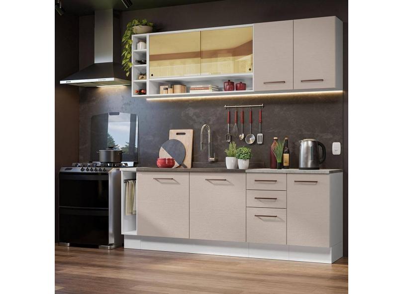 Armário De Cozinha Completa 220cm Branco/crema Agata Da Thêmis Madesa Branco/crema