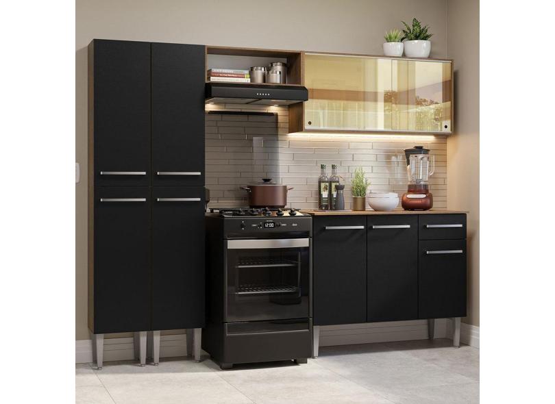 Armário De Cozinha Completa 229Cm Madesa 06 Rustic/Preto