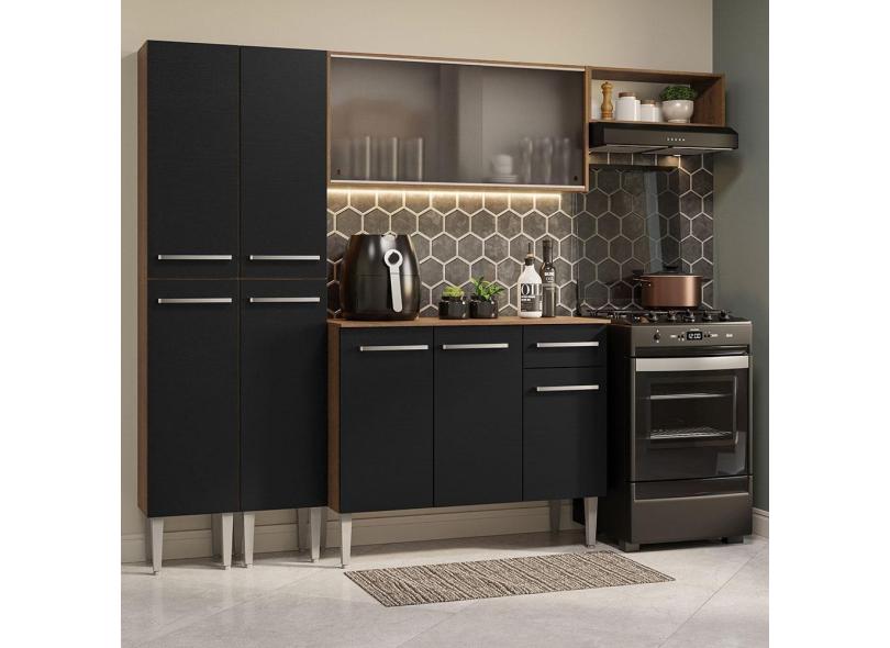 Armário De Cozinha Completa 229Cm Madesa 08 Rustic/Preto