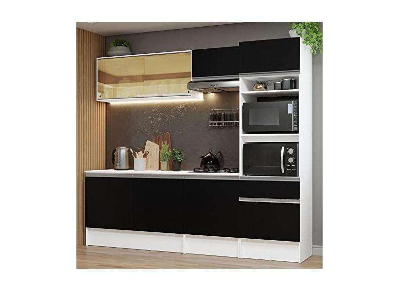 O menor preço encontrado no Brasil para Armário de Cozinha Completa 240cm Branco/preto Diamante Madesa 06 atualmente é R$ 1.147,99.