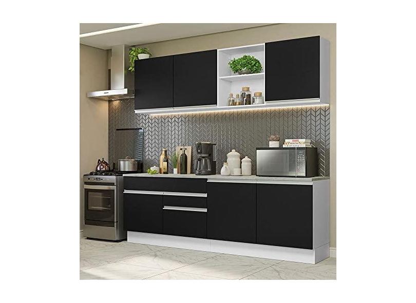 O menor preço encontrado no Brasil para Armário de Cozinha Completa 240cm Branco/preto Glamy Madesa 06 atualmente é R$ 1.847,99.