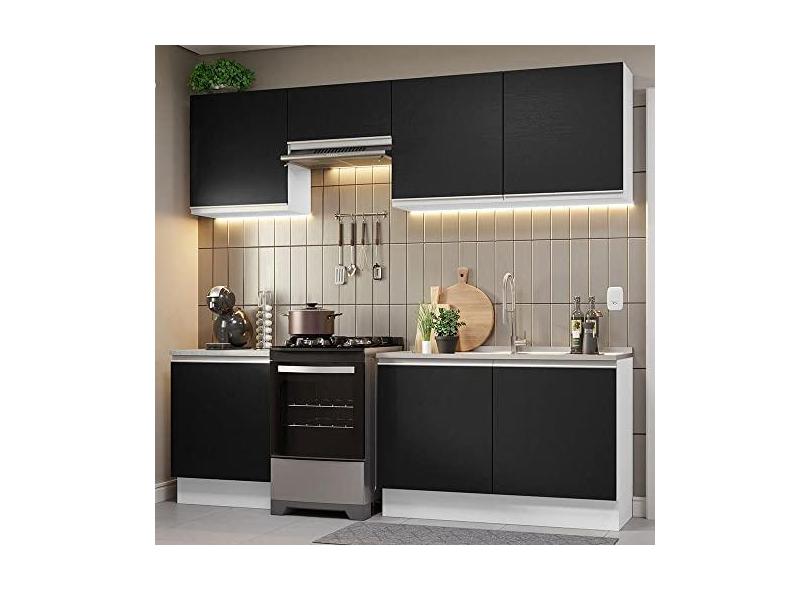 O menor preço encontrado no Brasil para Armário de Cozinha Completa 240cm Branco/preto Glamy Madesa 09 atualmente é R$ 1.486,79.