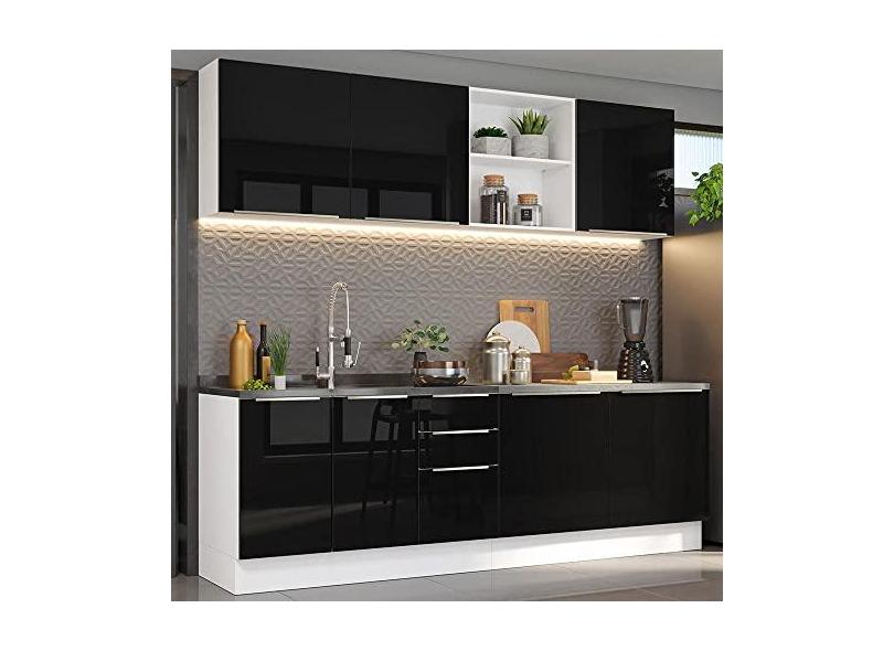 O menor preço encontrado no Brasil para Armário de Cozinha Completa 240cm Branco/preto Lux Madesa 05 atualmente é R$ 3.449,99.