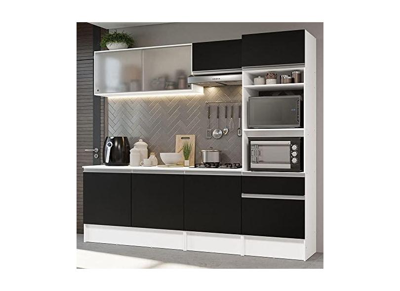 O menor preço encontrado no Brasil para Armário de Cozinha Completa 240cm Branco/preto Topazio Madesa 05 atualmente é R$ 1.161,99.