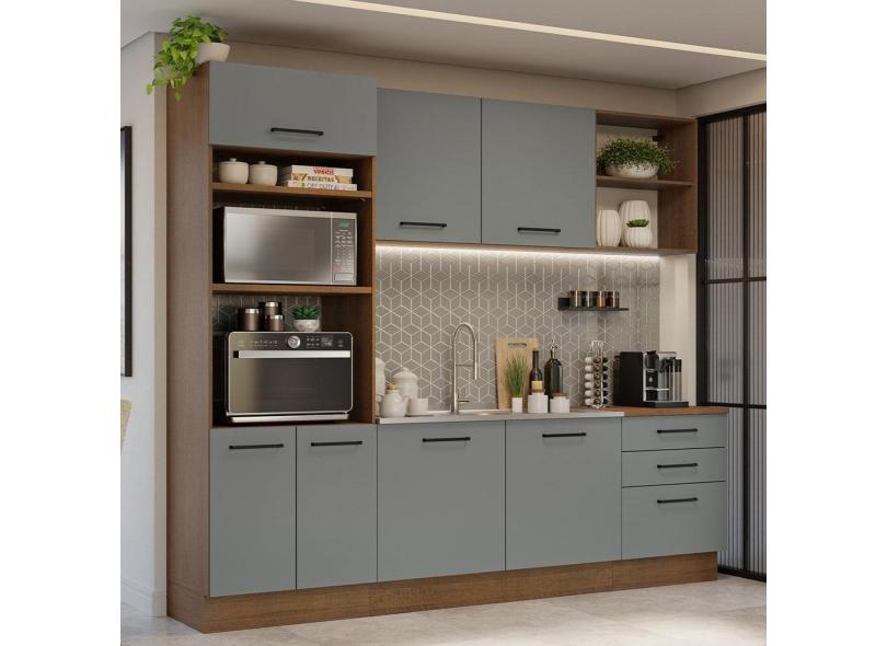 O menor preço encontrado no Brasil para Armário De Cozinha Completa 250cm Rustic/cinza Agata Madesa 01 Rustic/cinza atualmente é R$ 2.100,73.
