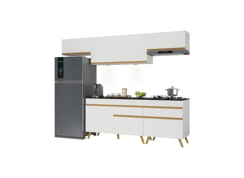 Armário de Cozinha Completa 260cm com Leds Veneza Up Multimóveis V2032 Branco/dourado