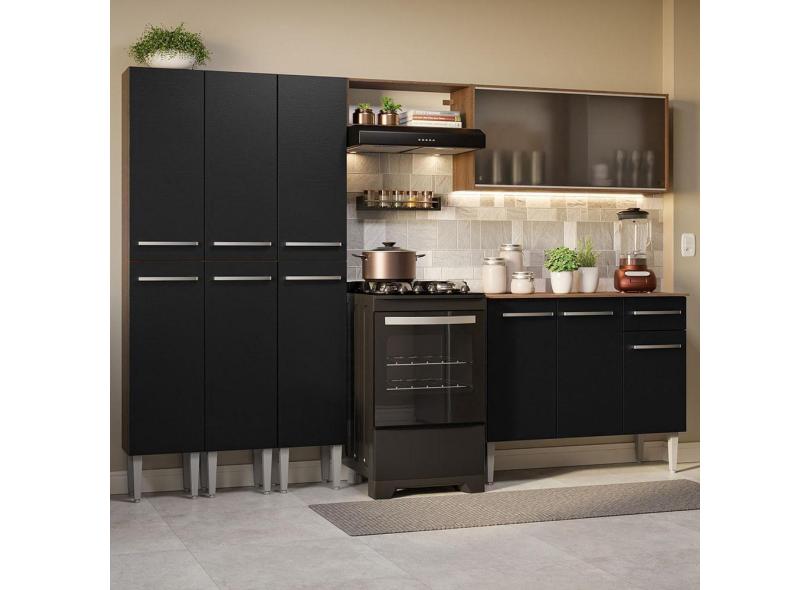 Armário De Cozinha Completa 261Cm Madesa 03 Rustic/Preto