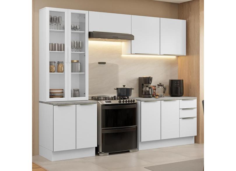O menor preço encontrado no Brasil para Armário de Cozinha Completa 270cm Branco/Branco Veludo Lux Madesa 04 atualmente é R$ 3.074,39.