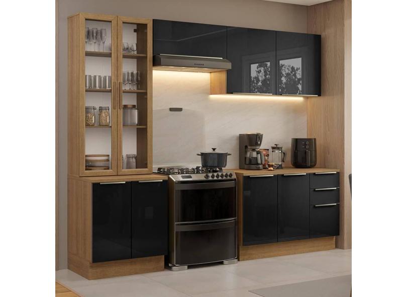 Armário de Cozinha Completa 270cm Rustic/Preto Lux Madesa 04