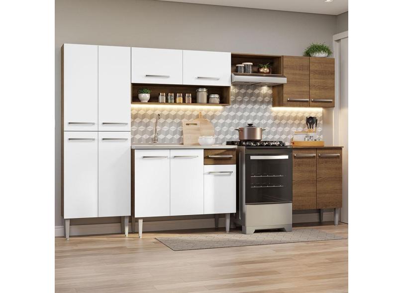 Armário De Cozinha Completa 293cm Com Pia Rustic/branco Emilly Madesa 08 Rustic/branco