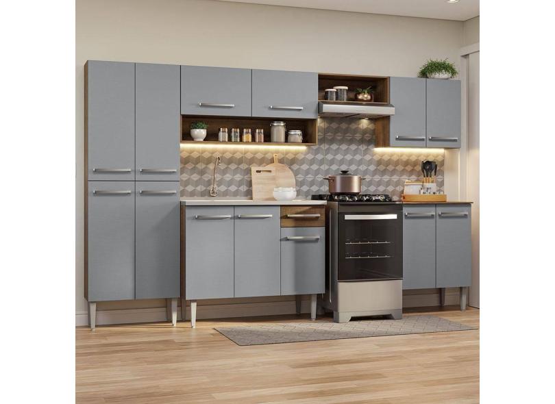 Armário De Cozinha Completa 293cm Com Pia Rustic/cinza Emilly Madesa 08 Rustic/cinza