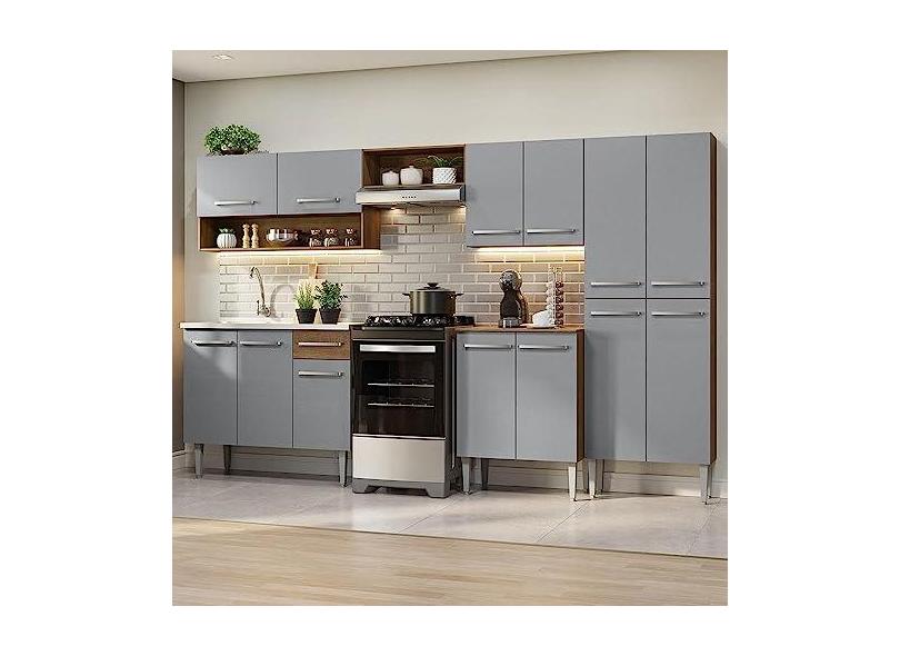 O menor preço encontrado no Brasil para Armário de Cozinha Completa 293cm com Pia Rustic/cinza Emilly Madesa 09 atualmente é R$ 1.289,99.