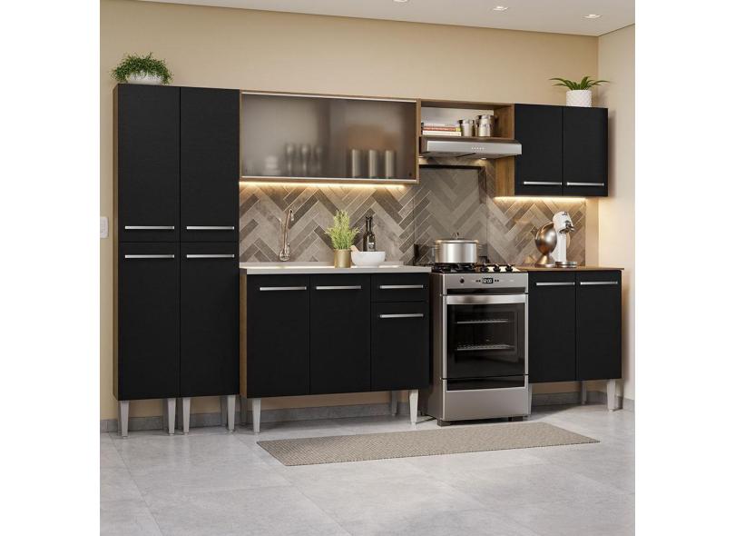Armário De Cozinha Completa 293cm Com Pia Rustic/preto Emilly Madesa 06 Rustic/preto