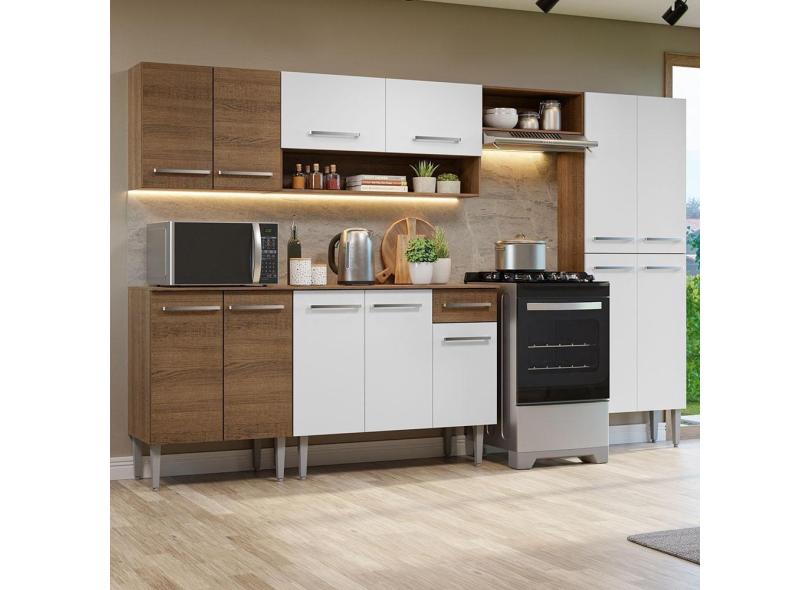 Armário De Cozinha Completa 293cm Rustic/branco Emilly Madesa 10 Rustic/branco