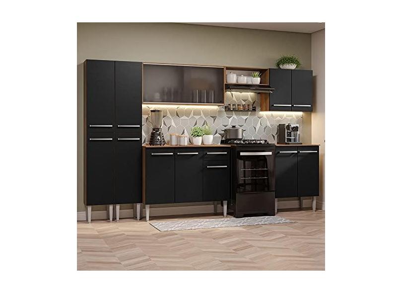 Armário de Cozinha Completa 293cm Rustic/preto Emilly Madesa 04