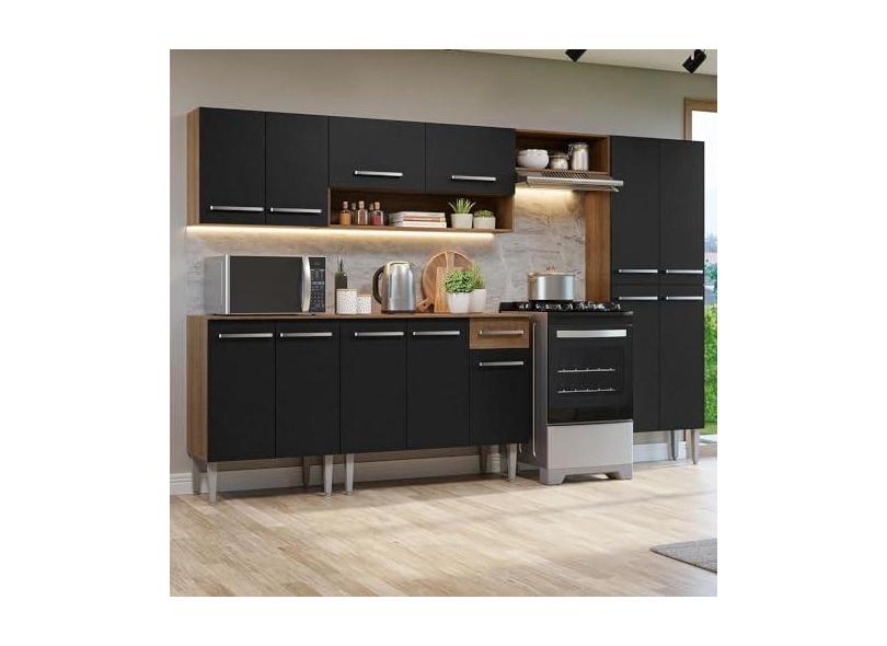 Armário de Cozinha Completa 293cm Rustic/preto Emilly Madesa 10