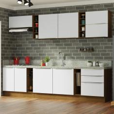 Armário De Cozinha Completa 300Cm /Branco Veludo Madesa