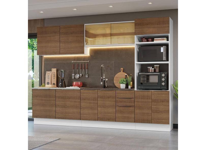 Armário De Cozinha Completa 310cm Branco/rustic Stella Madesa 03 Branco/rustic