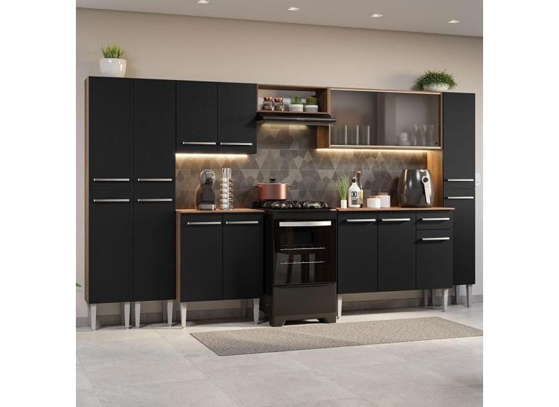 Armário De Cozinha Completa 325Cm Madesa 03 Rustic/Preto