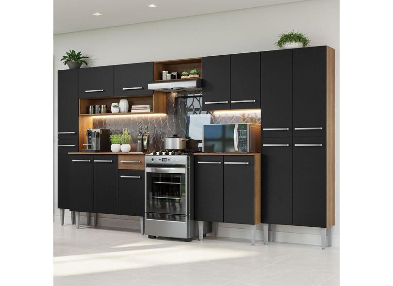 Armário De Cozinha Completa 325cm Rustic/preto Emilly Madesa