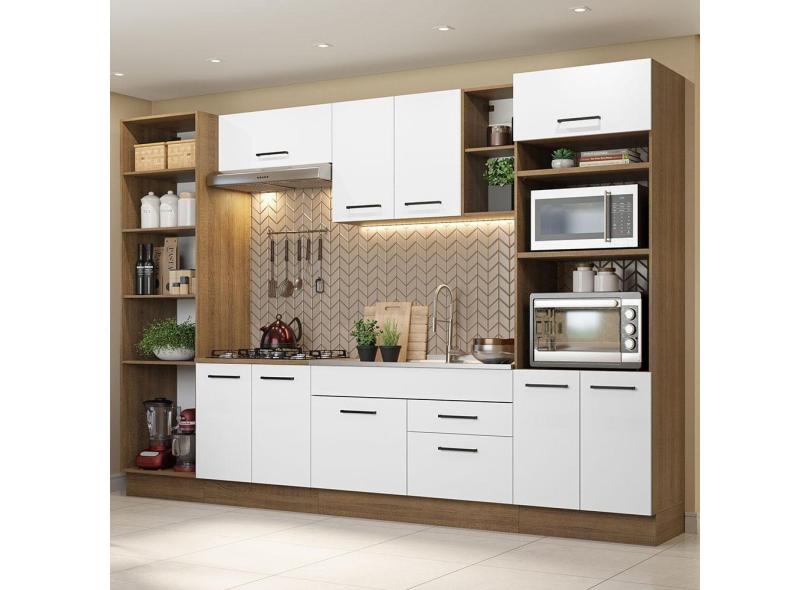 Armário De Cozinha Completa 330cm Rustic/branco Agata Madesa 02 Rustic/branco