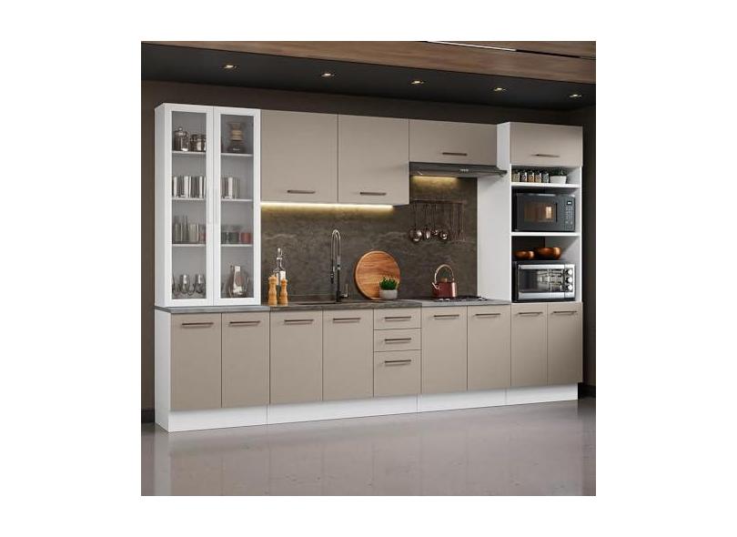Armário de Cozinha Completa 340cm Branco/crema Agata Madesa 01