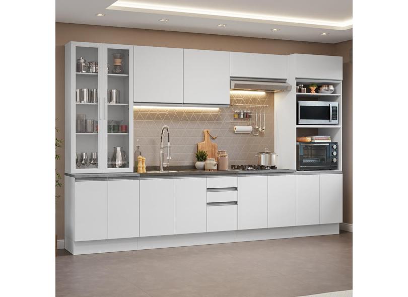 O menor preço encontrado no Brasil para Armário de Cozinha Completa 340cm Branco Glamy Madesa 01 atualmente é R$ 3.459,49.