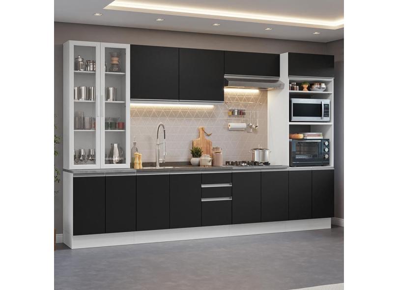 Armário de Cozinha Completa 340cm Branco/Preto Glamy Madesa 01