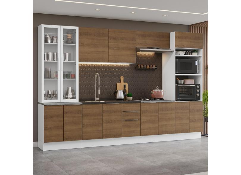 Armário de Cozinha Completa 340cm Branco/Rustic Stella Madesa 01