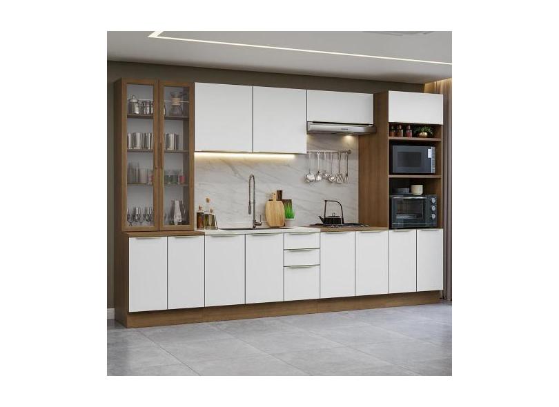O menor preço encontrado no Brasil para Armário de Cozinha Completa 340cm Lux Madesa 02, Rustic/Branco Veludo atualmente é R$ 4.589,99.