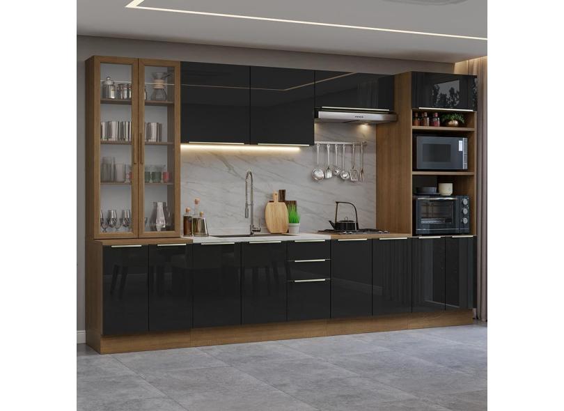 Armário de Cozinha Completa 340cm Rustic/Preto Lux Madesa 02