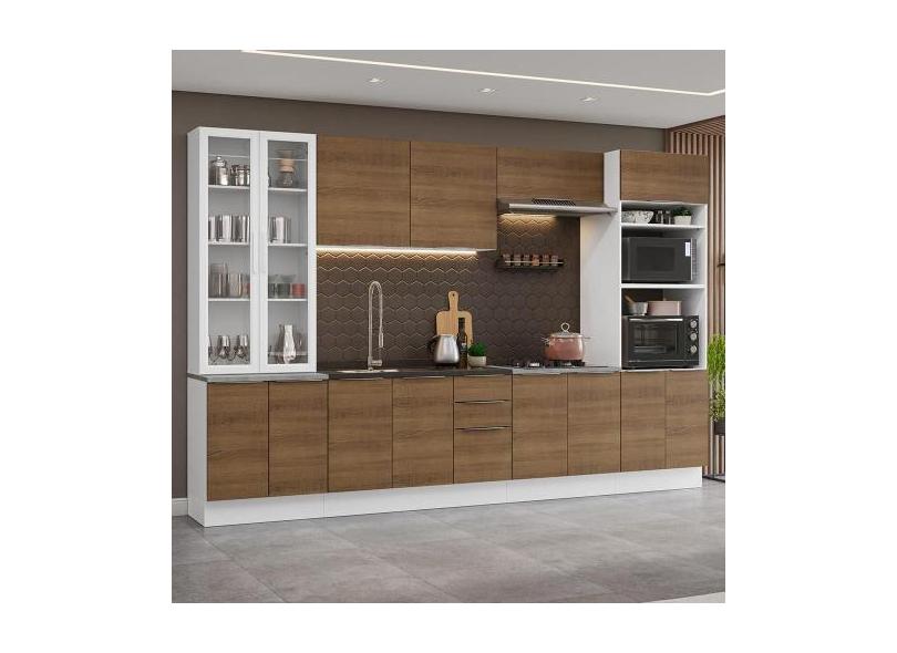 O menor preço encontrado no Brasil para Armário de Cozinha Completa 340cm Stella Madesa 01, Branco/Rustic atualmente é R$ 3.399,99.