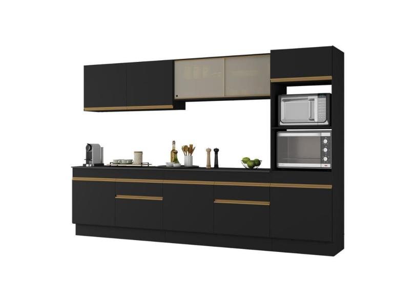 Armário De Cozinha Completa 5 Peças Com Rodapé Mp2175 Made Multimóveis Preto/dourado Preto/dourado