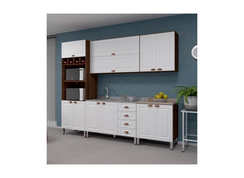 Armário de Cozinha Completa 6 Peças com Tampo e Espaço para Micro-onda