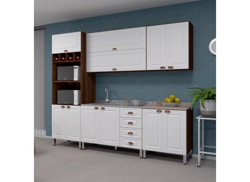 O menor preço encontrado no Brasil para Armário De Cozinha Completa 6 Peças Com Tampo E Espaço Para Micro-ondas Safira Luciane Móveis Nogueira Dourado c/ Branco Pet E Connect atualmente é R$ 4.000,20.