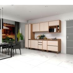 O menor preço encontrado no Brasil para Armário de Cozinha Completa 7 Peças com Tampo Vanilla com Connect Lari Luciane Móveis atualmente é R$ 4.665,49.