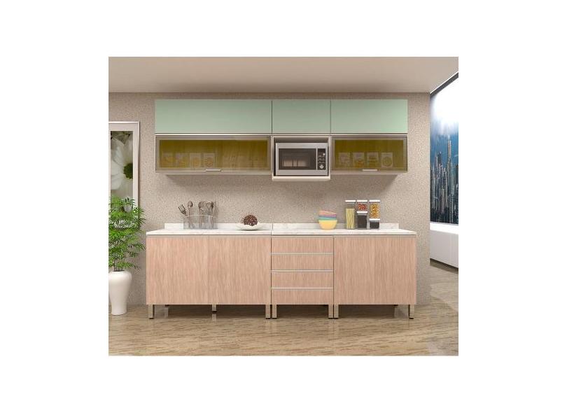 Armário De Cozinha Completa 8 Peças Com Tampo Legno Crema Com Cumaru E