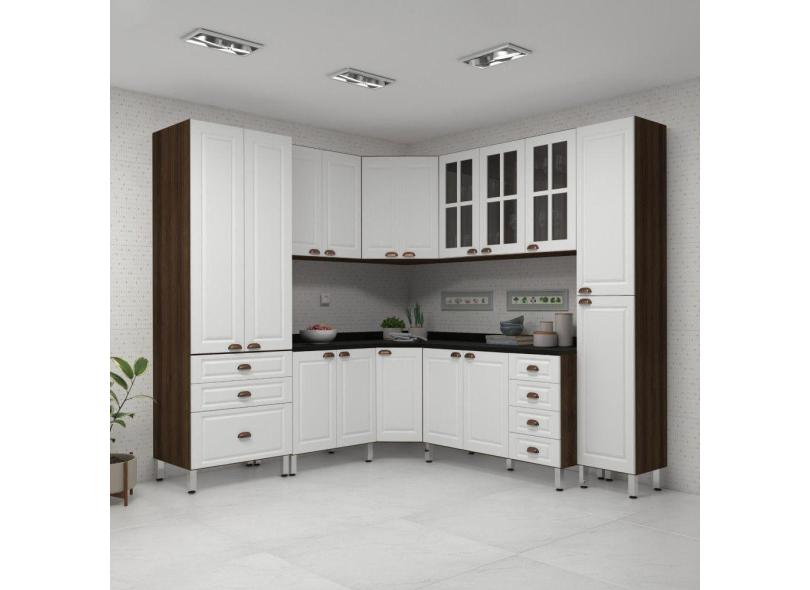 Armário De Cozinha Completa 8 Peças Com Tampos E Vidro Safira Luciane Móveis Nogueira-branco-preto
