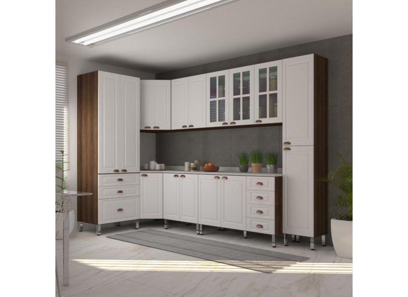 Armário de Cozinha Completa 8 Peças com Tampos e Vidro Safira Luciane Móveis