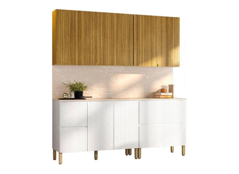 Armário De Cozinha Completa Com Balcão Art Kits Paraná 8 Portas 3 Gavetas Madeirado / Branco