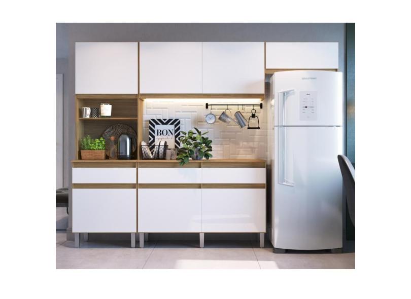 Armário de Cozinha Completa com Balcão e Aéreo Pimenta Decibal Naturalle Branco