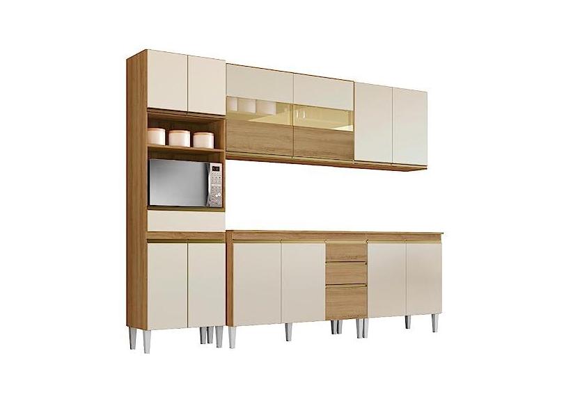 O menor preço encontrado no Brasil para Armário de Cozinha Completa com Balcão e Nicho para Micro-ondas 13 Portas 3 Gavetas Clara Atacama/Off White Aramóveis atualmente é R$ 1.359,00.