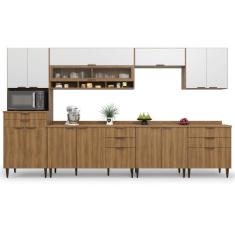 O menor preço encontrado no Brasil para Armário De Cozinha Completa Com Balcão Nicho Para Micro Ondas 13 Portas 8 Gavetas Paris Nogal/branco atualmente é R$ 2.287,12.
