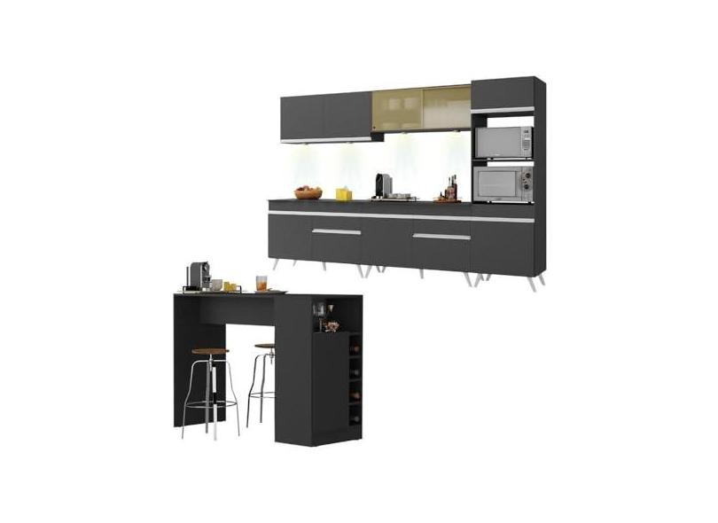 Armário de Cozinha Completa com Bancada Americana Veneza Multimóveis Mp2199 Preto/branco