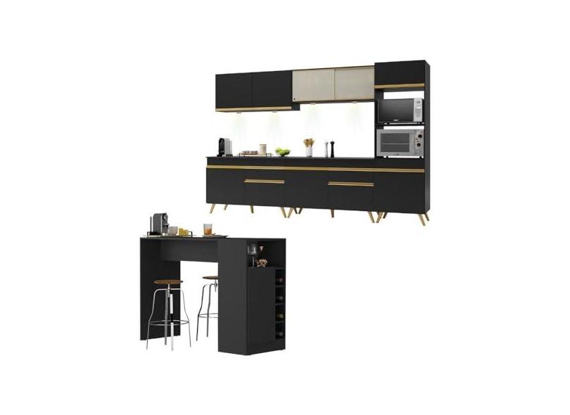 Armário de Cozinha Completa com Bancada Americana Veneza Multimóveis Mp2199 Preto/dourado