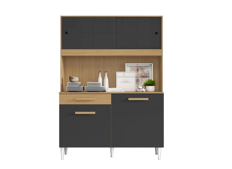 Armário de Cozinha Completa Compacta 4 Portas 1 Gaveta Atacama / Grafite Julia Aramóveis