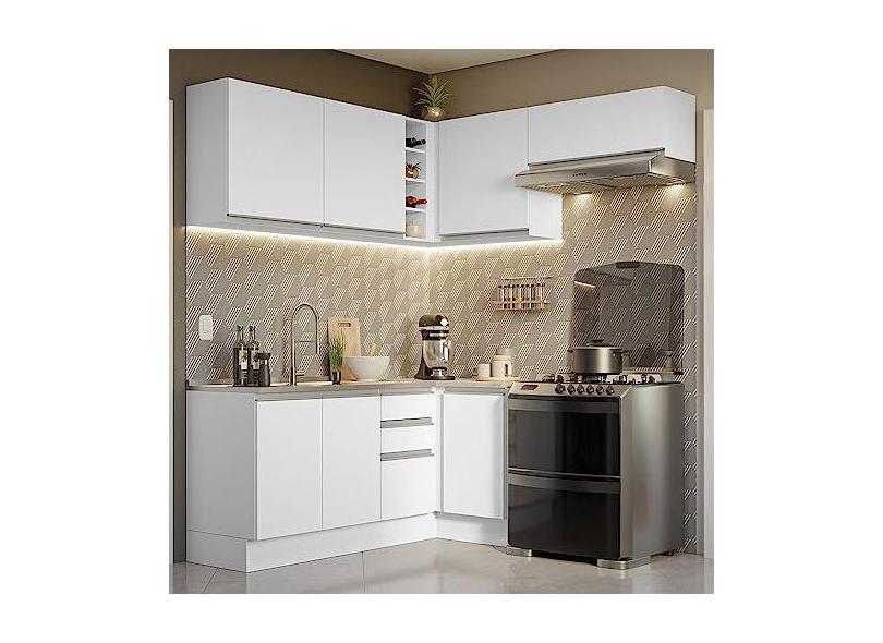 O menor preço encontrado no Brasil para Armário de Cozinha Completa de Canto 349cm Branco Glamy Madesa 07 atualmente é R$ 1.967,99.